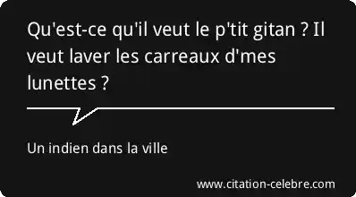 Qu'est-ce qu'il veut le p'tit gitan ? Il veut laver les carreaux d'mes lunettes ?