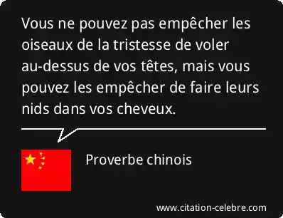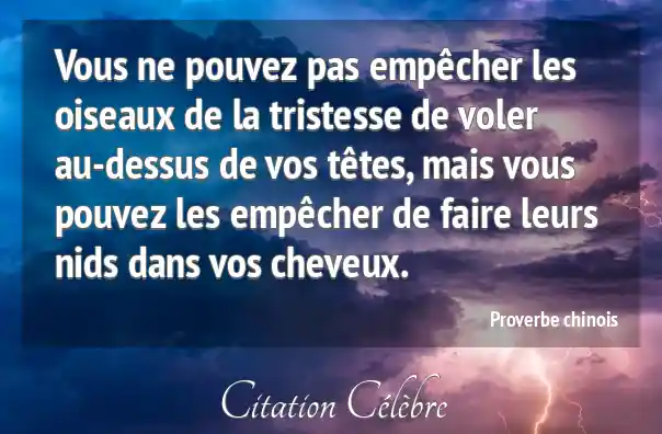 Vous ne pouvez pas empêcher les oiseaux de la tristesse de voler au-dessus de vos têtes, mais vous pouvez les empêcher de faire leurs nids dans vos cheveux.