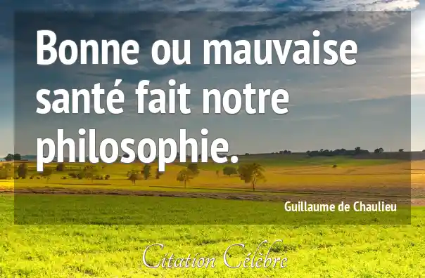 Bonne ou mauvaise santé fait notre philosophie.