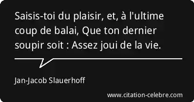 Saisis-toi du plaisir, et, à l'ultime coup de balai, Que ton dernier soupir soit : Assez joui de la vie.