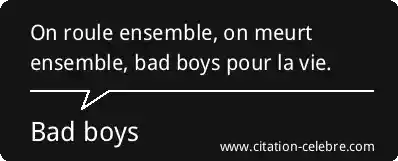On roule ensemble, on meurt ensemble, bad boys pour la vie.