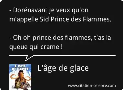 - Dorénavant je veux qu'on m'appelle Sid Prince des Flammes. - Oh oh prince des flammes, t'as la queue qui crame !