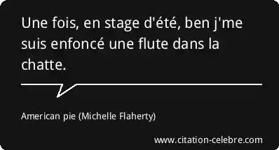 Citation  American pie ete : Une fois, en stage d'été, ben j'me suis enfoncé une... (Michelle Flaherty - film & série)