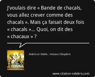 J'voulais dire « Bande de chacals, vous allez crever comme des chacals ». Mais ça faisait deux fois « chacals »... Quoi, on dit des « chacaux » ?