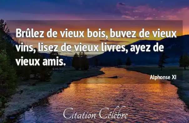 Brûlez de vieux bois, buvez de vieux vins, lisez de vieux livres, ayez de vieux amis.