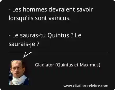 - Les hommes devraient savoir lorsqu'ils sont vaincus. - Le sauras-tu Quintus ? Le saurais-je ?
