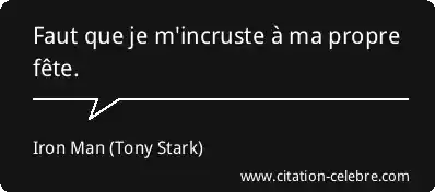 Citation  Iron Man fete : Faut que je m'incruste à ma propre fête.... (Tony Stark - film & série)