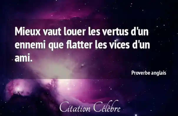 Mieux vaut louer les vertus d'un ennemi que flatter les vices d'un ami.