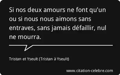 Si nos deux amours ne font qu'un ou si nous nous aimons sans entraves, sans jamais défaillir, nul ne mourra.