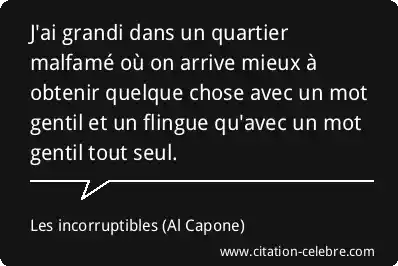 J'ai grandi dans un quartier malfamé où on arrive mieux à obtenir quelque chose avec un mot gentil et un flingue qu'avec un mot gentil tout seul.
