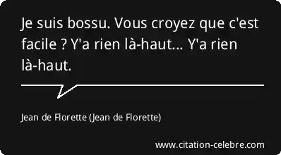 Je suis bossu. Vous croyez que c'est facile ? Y'a rien là-haut... Y'a rien là-haut.