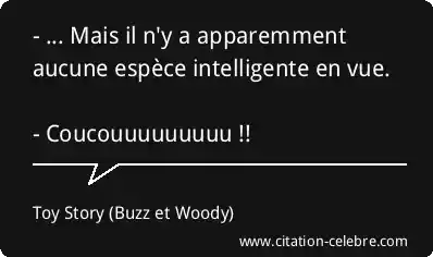 Citation  Toy Story aucune : - ... Mais il n'y a apparemment aucune espèce intelligente... (Buzz et Woody - film & série)
