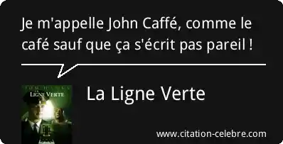 La réplique est une présentation simple et directe. Le personnage, John Caffey, prononce son nom et précise immédiatement la manière de l'épeler en utilisant une comparaison phonétique avec le mot usuel et connu de tous, "café", tout en insistant sur la différence d'orthographe. Cela permet à l'interlocuteur, et par extension à l'internaute, de retenir facilement un nom peu commun.