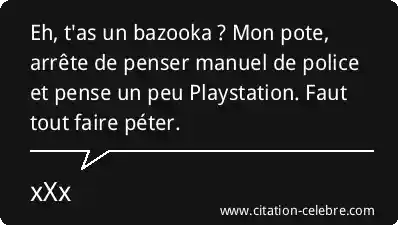 Eh, t'as un bazooka ? Mon pote, arrête de penser manuel de police et pense un peu Playstation. Faut tout faire péter.