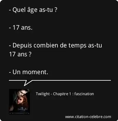 - Quel âge as-tu ? - 17 ans. - Depuis combien de temps as-tu 17 ans ? - Un moment.