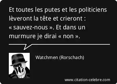 Et toutes les putes et les politiciens lèveront la tête et crieront : « sauvez-nous ». Et dans un murmure je dirai « non ».