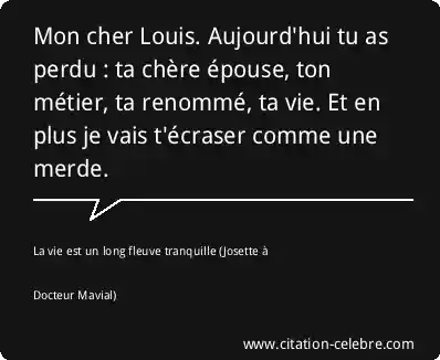 Mon cher Louis. Aujourd'hui tu as perdu : ta chère épouse, ton métier, ta renommé, ta vie. Et en plus je vais t'écraser comme une merde.