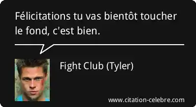 Félicitations tu vas bientôt toucher le fond, c'est bien.