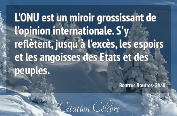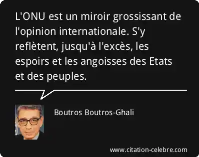 L'ONU est un miroir grossissant de l'opinion internationale. S'y reflètent, jusqu'à l'excès, les espoirs et les angoisses des Etats et des peuples.