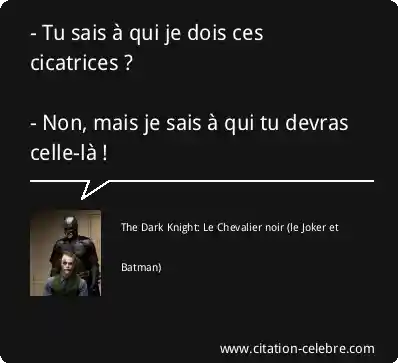 - Tu sais à qui je dois ces cicatrices ? - Non, mais je sais à qui tu devras celle-là !