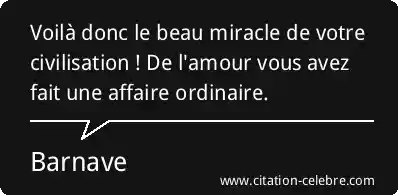 Voilà donc le beau miracle de votre civilisation ! De l'amour vous avez fait une affaire ordinaire.