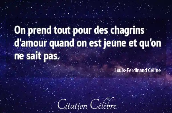 On prend tout pour des chagrins d'amour quand on est jeune et qu'on ne sait pas.