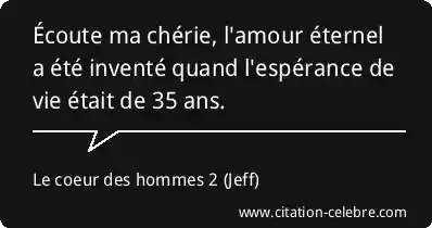 Écoute ma chérie, l'amour éternel a été inventé quand l'espérance de vie était de 35 ans.
