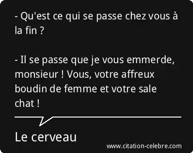 - Qu'est ce qui se passe chez vous à la fin ? - Il se passe que je vous emmerde, monsieur ! Vous, votre affreux boudin de femme et votre sale chat !