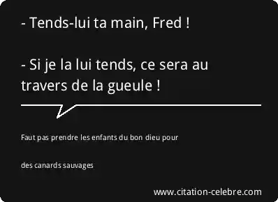 - Tends-lui ta main, Fred ! - Si je la lui tends, ce sera au travers de la gueule !