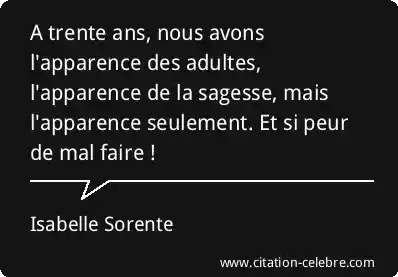 A trente ans, nous avons l'apparence des adultes, l'apparence de la sagesse, mais l'apparence seulement. Et si peur de mal faire !