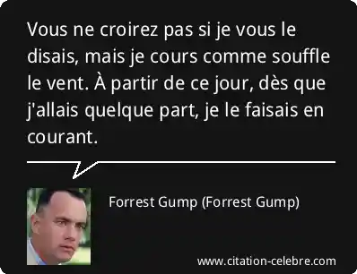 Vous ne croirez pas si je vous le disais, mais je cours comme souffle le vent. À partir de ce jour, dès que j'allais quelque part, je le faisais en courant.