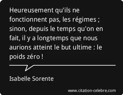 Heureusement qu'ils ne fonctionnent pas, les régimes ; sinon, depuis le temps qu'on en fait, il y a longtemps que nous aurions atteint le but ultime : le poids zéro !