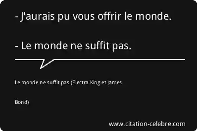 - J'aurais pu vous offrir le monde. - Le monde ne suffit pas.