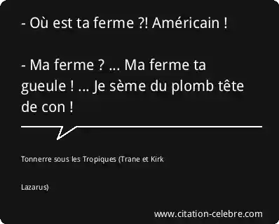 - Où est ta ferme ?! Américain ! - Ma ferme ? ... Ma ferme ta gueule ! ... Je sème du plomb tête de con !