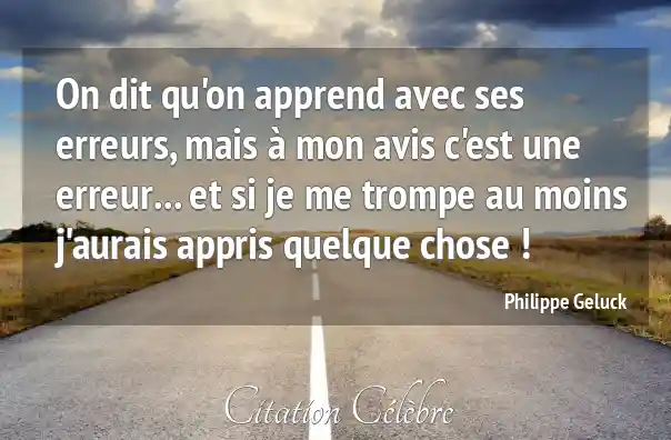 Citation Philippe Geluck chose : On dit qu'on apprend avec ses erreurs, mais à mon...