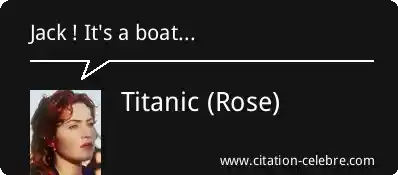 - Tu n'en as jamais parlé ? - Non, jamais, à personne, pas même à ton grand père. Le coeur d'une femme est un océan de secret... Mais désormais vous saurez qu'il y avait un dénommé Jack Dawson, et qu'il m'a [...] ► Lire la suite