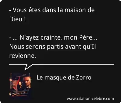 - Vous êtes dans la maison de Dieu ! - ... N'ayez crainte, mon Père... Nous serons partis avant qu'Il revienne.