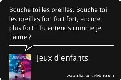 Bouche toi les oreilles. Bouche toi les oreilles fort fort fort, encore plus fort ! Tu entends comme je t'aime ?