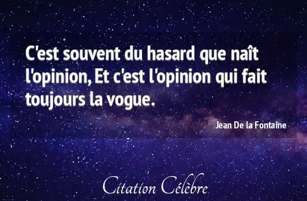 C'est souvent du hasard que naît l'opinion, Et c'est l'opinion qui fait toujours la vogue.