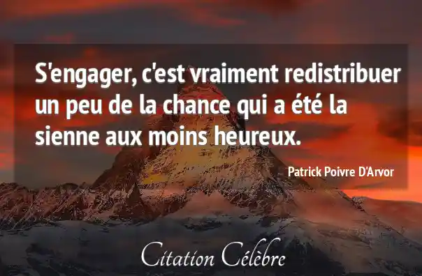 S'engager, c'est vraiment redistribuer un peu de la chance qui a été la sienne aux moins heureux.