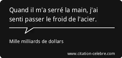Quand il m'a serré la main, j'ai senti passer le froid de l'acier.