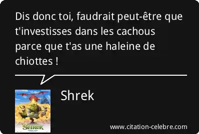 Dis donc toi, faudrait peut-être que t'investisses dans les cachous parce que t'as une haleine de chiottes !