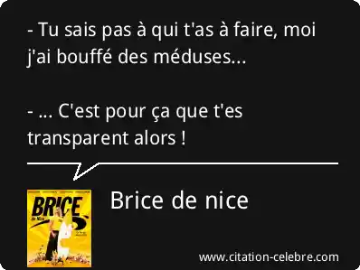 - Tu sais pas à qui t'as à faire, moi j'ai bouffé des méduses... - ... C'est pour ça que t'es transparent alors !
