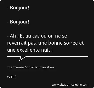 - Bonjour! - Bonjour! - Ah ! Et au cas où on ne se reverrait pas, une bonne soirée et une excellente nuit !
