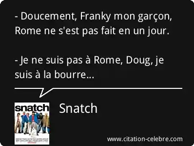 - Doucement, Franky mon garçon, Rome ne s'est pas fait en un jour. - Je ne suis pas à Rome, Doug, je suis à la bourre...