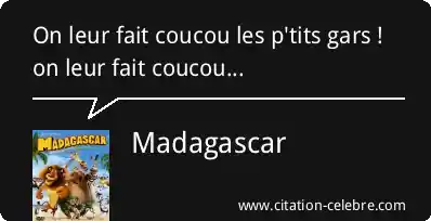 Citation  Madagascar coucou : On leur fait coucou les p'tits gars ! on leur fait... (film & série)