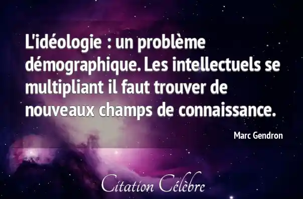 L'idéologie : un problème démographique. Les intellectuels se multipliant il faut trouver de nouveaux champs de connaissance.