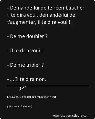 - Demande-lui de te réembaucher, il te dira voui, demande-lui de t'augmenter, il te dira voui ! - De me doubler ? - Il te dira voui ! - De me tripler ? - ... Il te dira non.