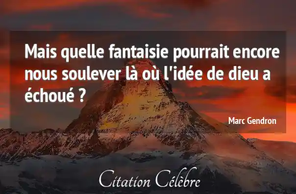 Mais quelle fantaisie pourrait encore nous soulever là où l'idée de dieu a échoué ?