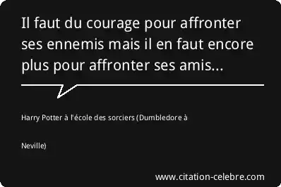 Citation  Harry Potter à l'école des sorciers courage : Il faut du courage pour affronter ses ennemis mais il... (Dumbledore à Neville - film & série)